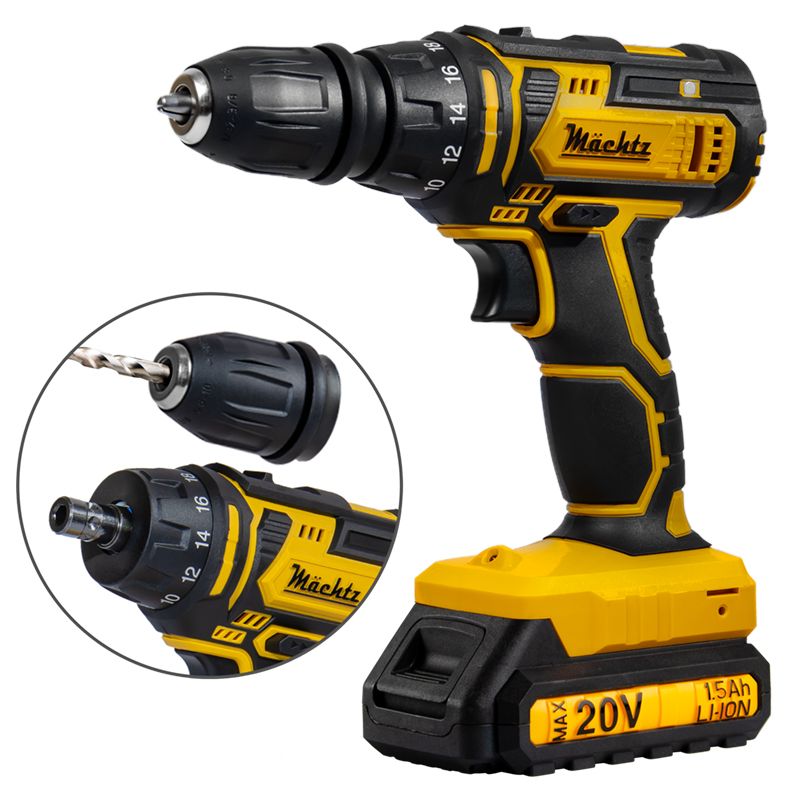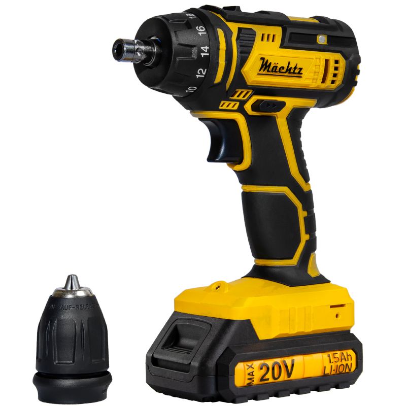 Аккумуляторный шуруповерт Mächtz MCD-20Q-Li - надежный и универсальный инструмент предназначенный для эффективного закручивания, откручивания крепежных элементов и сверления отверстий в различных материалах. Он прекрасно подойдет, как для бытовых задач, так и для профессиональных.
