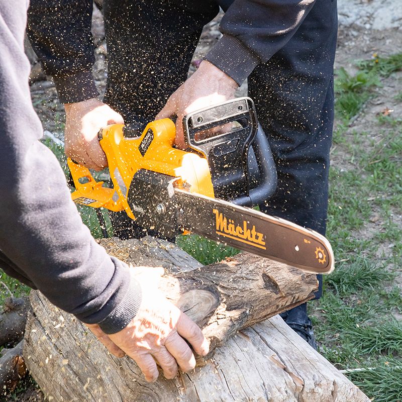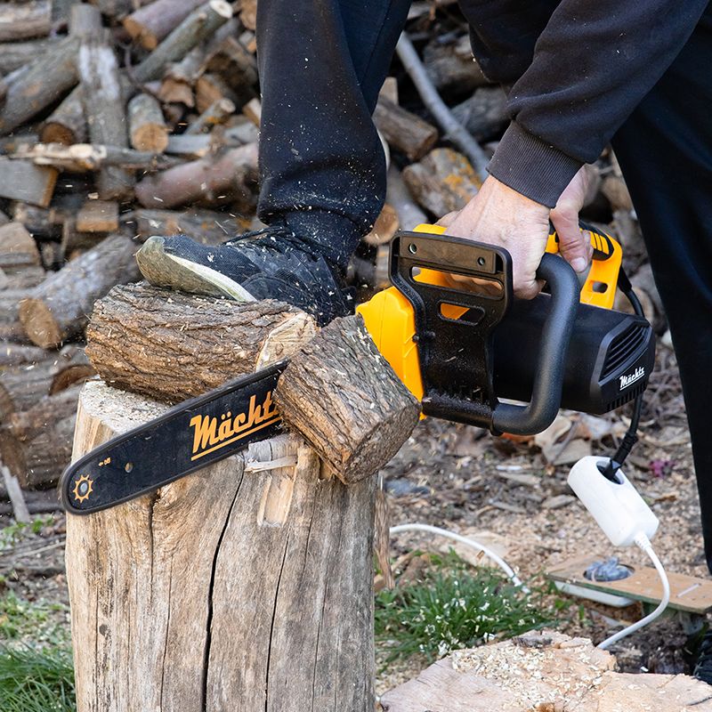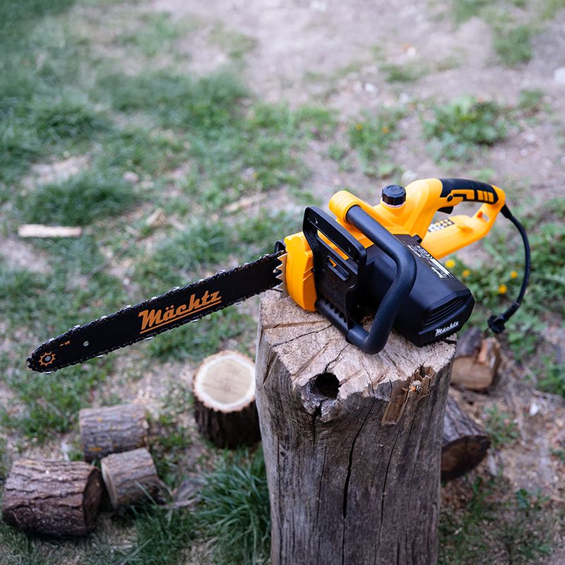 Электропила Mächtz MCE-2740 оборудована двигателем мощностью 2,7 кВт и легко справляется с заготовкой большого количества дров и распиловкой деревьев разной твердости.
