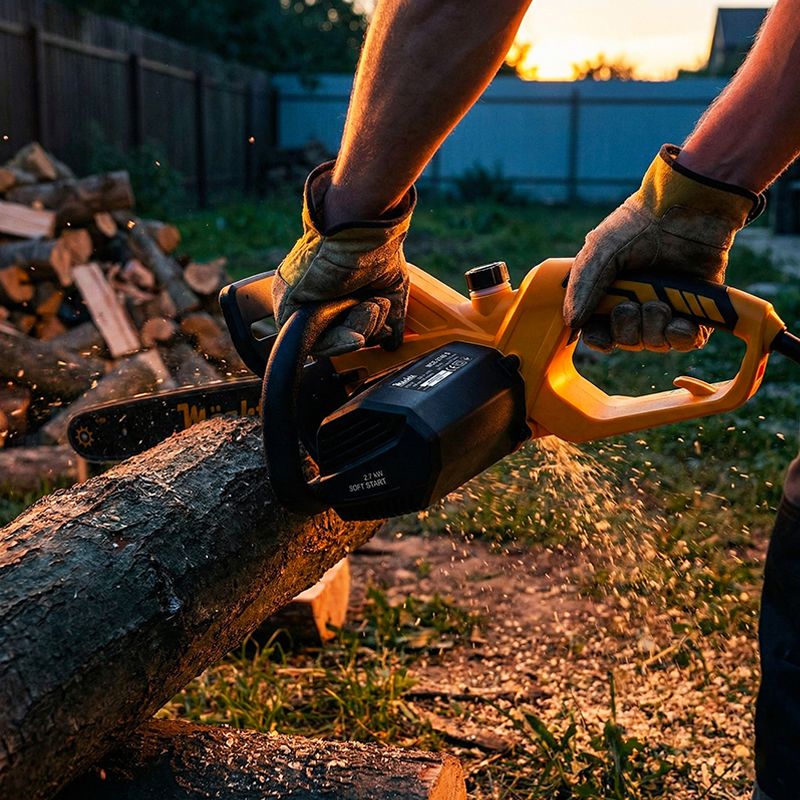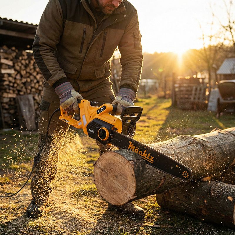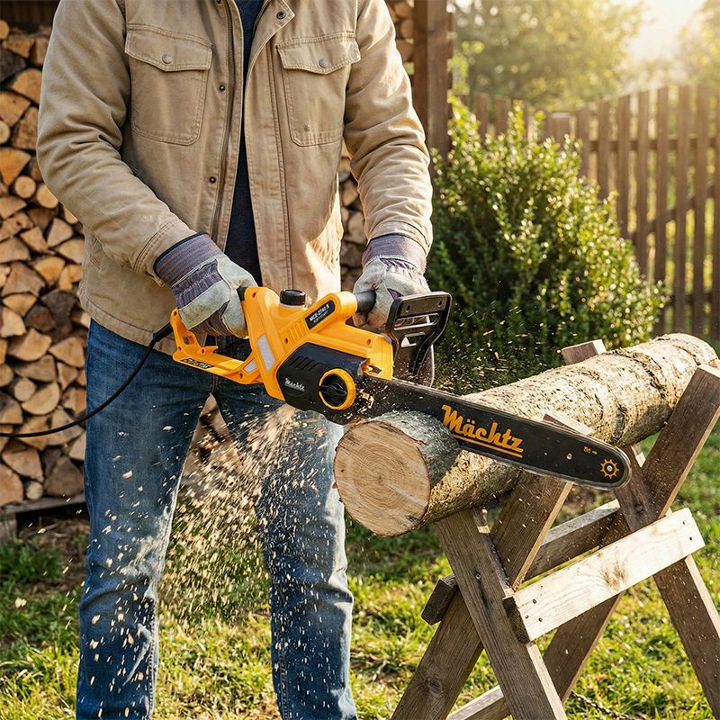 Электропила Mächtz MCE-2740 S оборудована двигателем мощностью 2,7 кВт и легко справляется с заготовкой большого количества дров и распиловкой деревьев разной твердости.