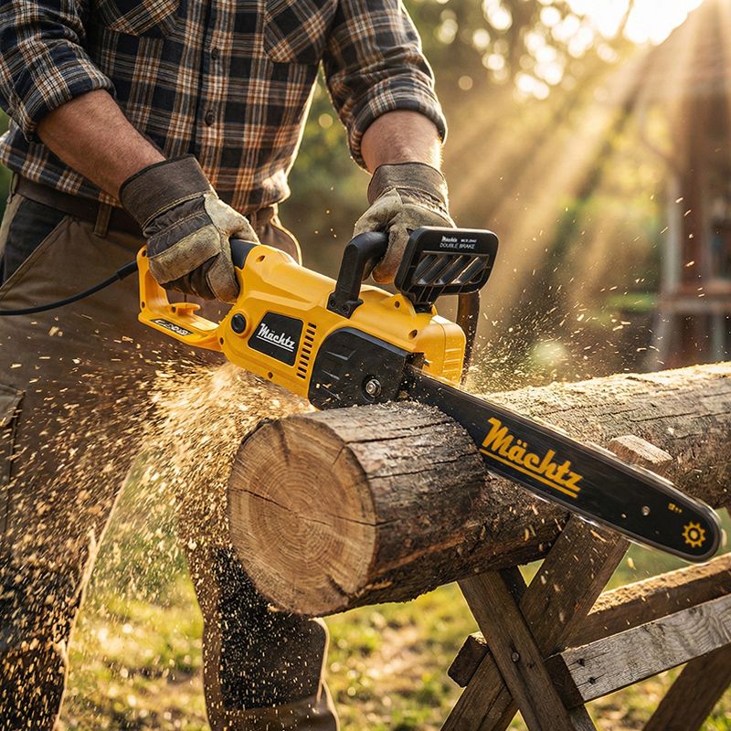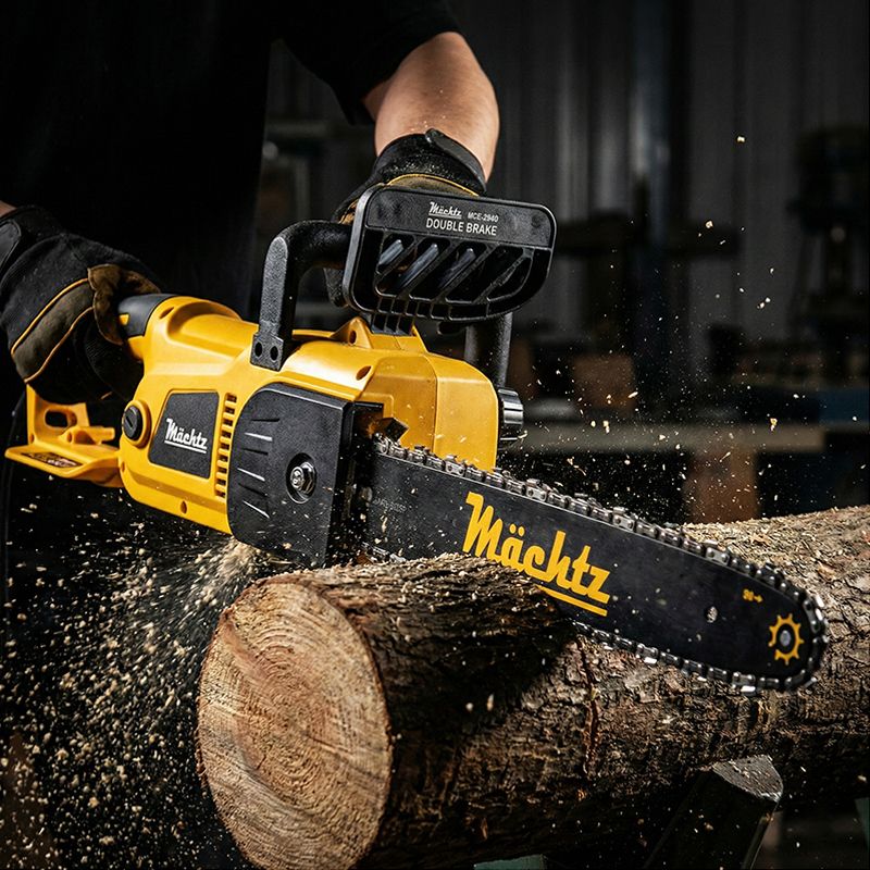 Электропила Mächtz MCE-2940 оборудована двигателем мощностью 2,9 кВт и отлично справляется с распиловкой досок, брёвен, стволов деревьев и и прочими строительными и ремонтными задачами.. Также инструмент подходит для работы внутри помещения.