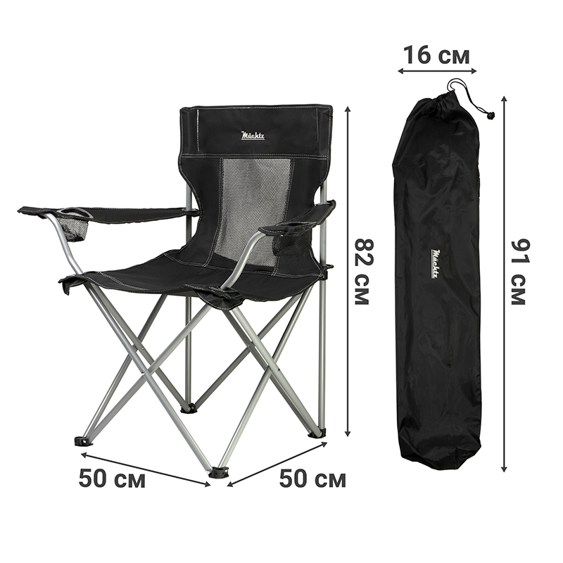 Простая конструкция со стальными ножками, быстрым складыванием и двумя подстаканниками.