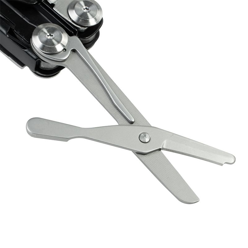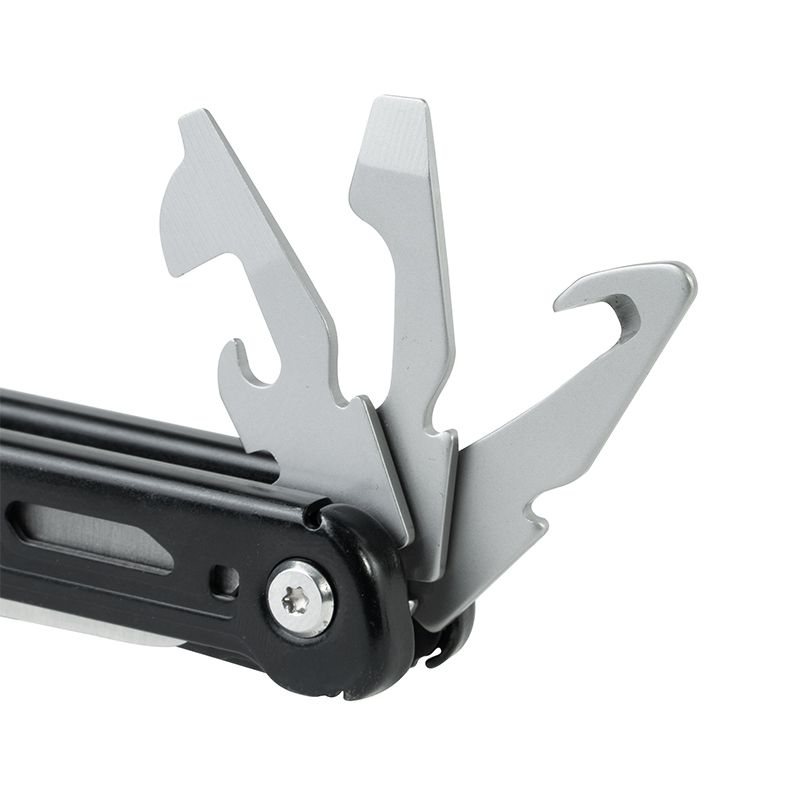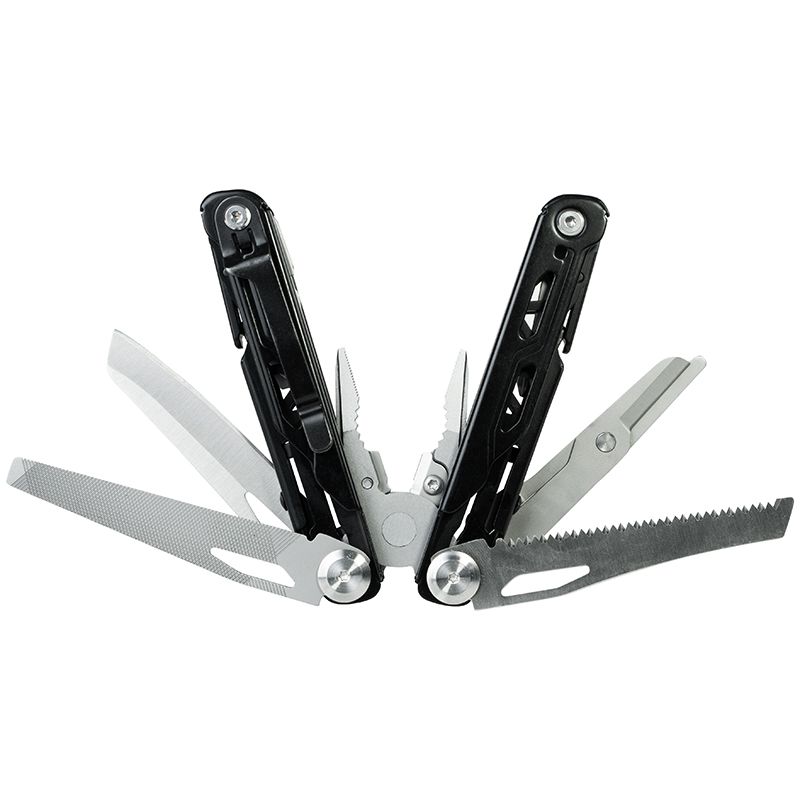 Расширенный набор включает нож, плоскогубцы, пассатижи, кусачки со сменными лезвиями, сверхпрочные кусачки, ножницы, пилу, стропорез, шило, напильник, линейку, открывалки для банок и бутылок, битодержатель, обжим гильз для проводки, съёмник изоляции, ледоруб, плоские отвёртки (3, 5, 6 мм) и крестообразную отвёртку.