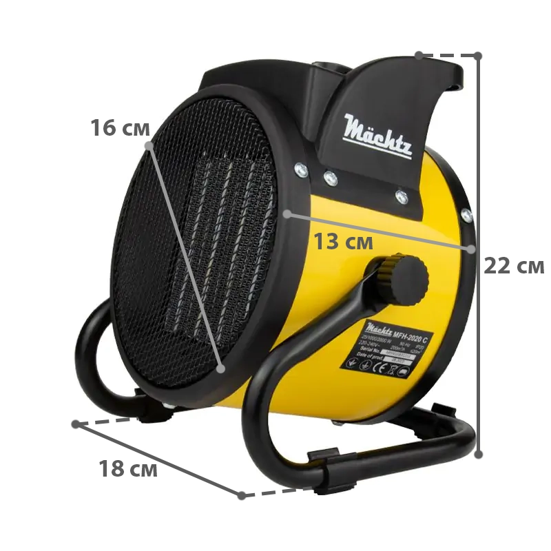 Компактная тепловая пушка Mächtz MFH-2020 C с керамическим нагревателем, имеющим сверхвысокую тепловую эффективность.