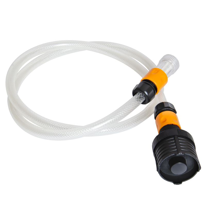 Универсальный впускной шланг длиной 1,5 м с обратным клапаном, фильтром грубой очистки и двумя быстросъемными коннекторами HPC. Предназначен для всех моек высокого давления Mächtz.