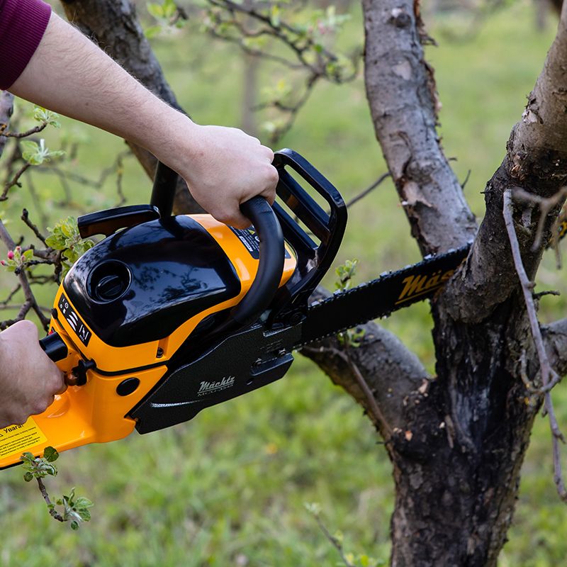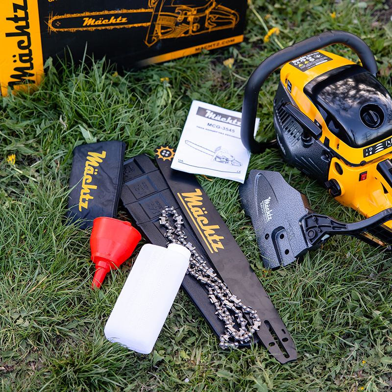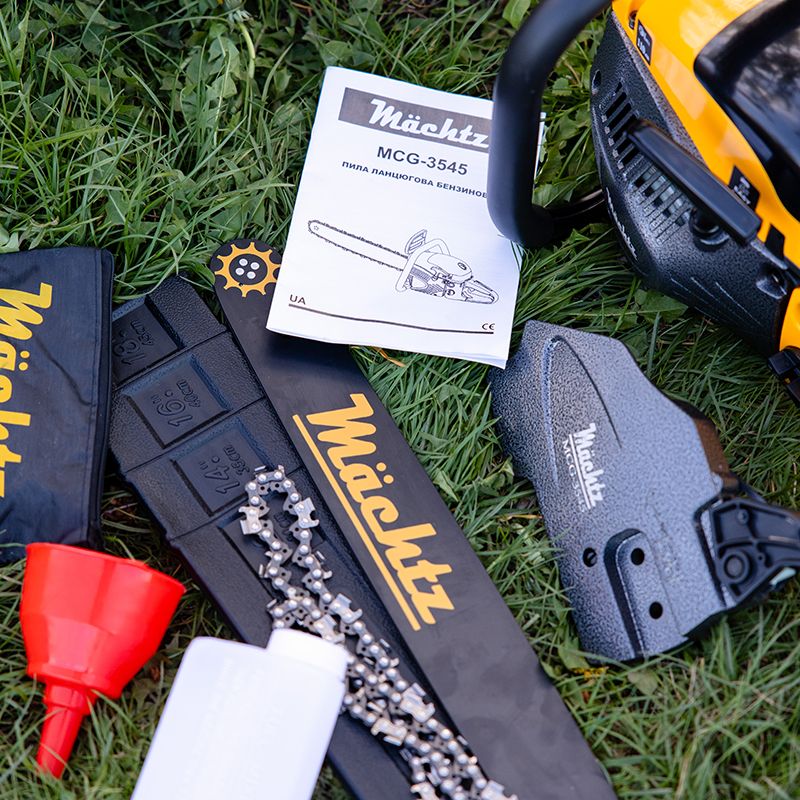 Бензопила Mächtz MCG-3545 має посилений корпус із металевим захистом стартера та механізму зчеплення, це забезпечує захист двигуна від механічних пошкоджень та дозволяє використовувати інструмент для робіт підвищеної складності.