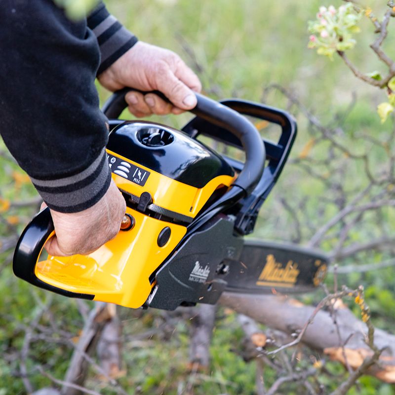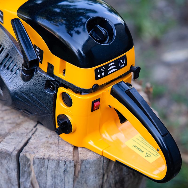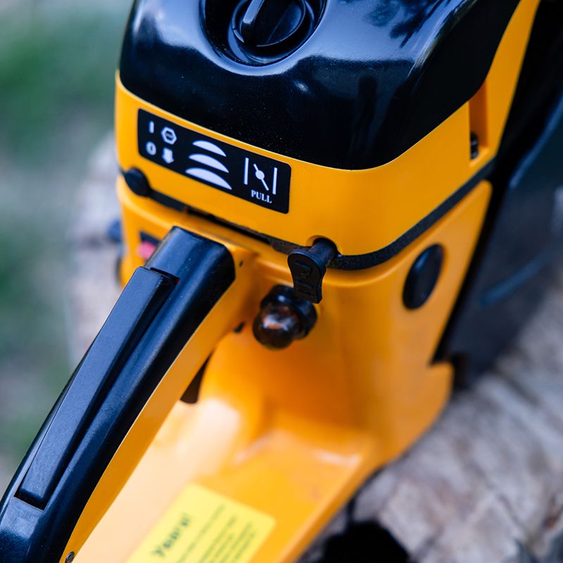 Ергономічна, нековзна передня рукоятка бензопили гарантує зручний хват і повний контроль над операціями.