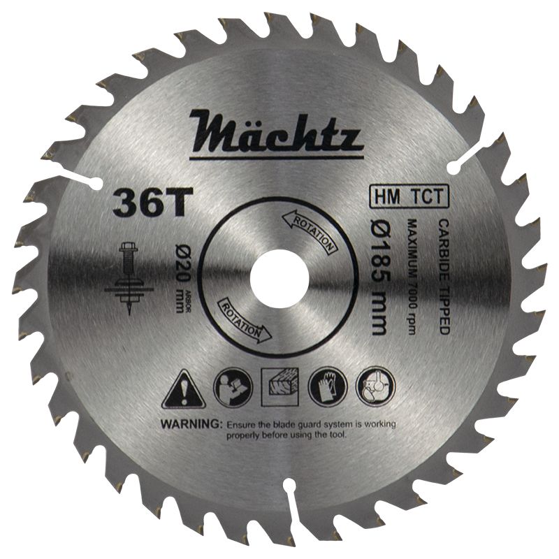 Диск пильний Mächtz 185x20x36T розроблений для ефективного різу дерев'яних матеріалів.