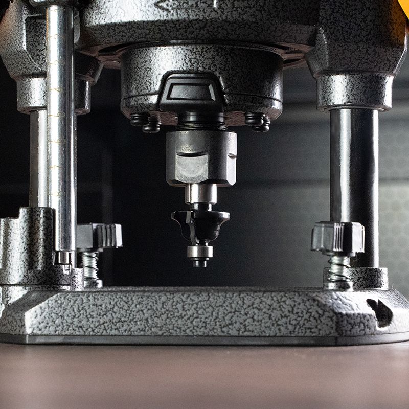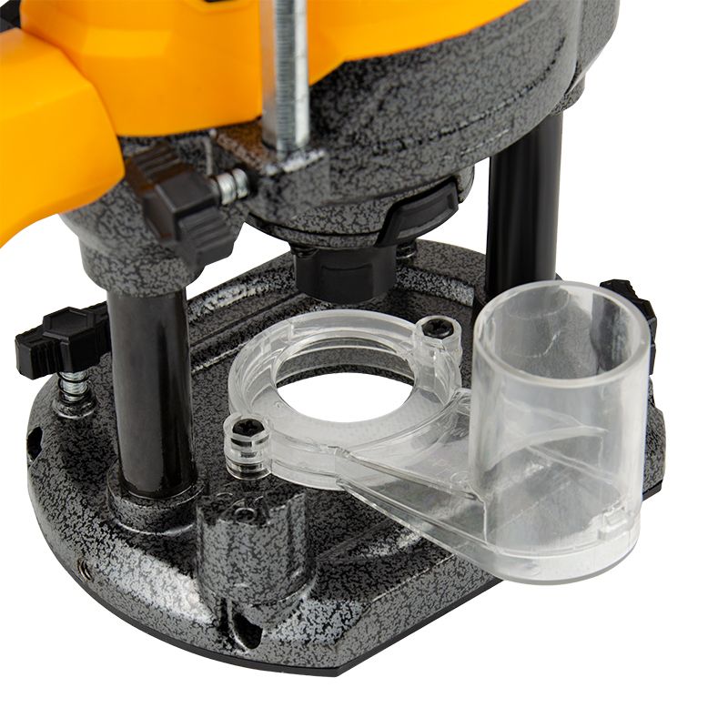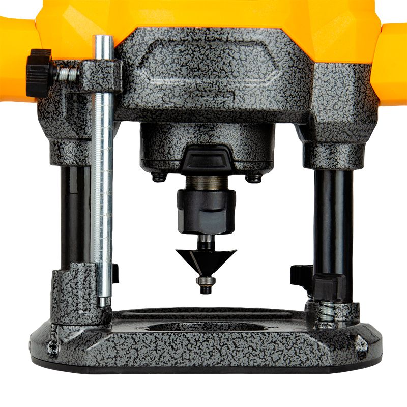 Потужний двигун на 2000 Вт впорається з виконанням складних завдань з обробки деревини будь-якої породи. Швидка зміна глибини фрезерування забезпечується 7‑позиційним упором револьверного типу на опорній платформі.