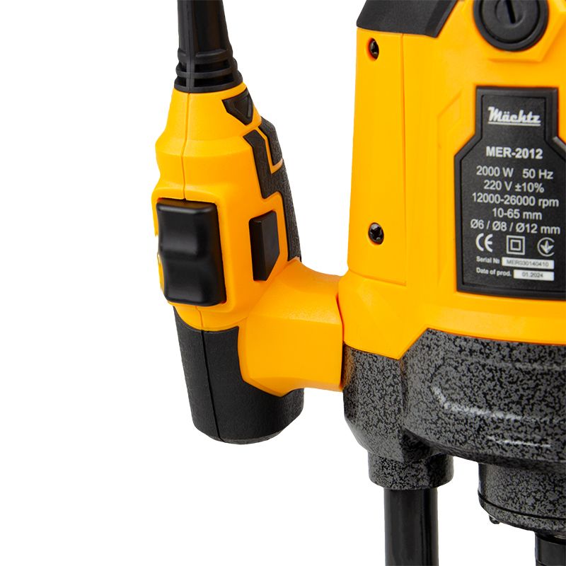 Фрезер по дереву електричний Mächtz MER-2012 - підвищена потужність для виконання складних і навіть професійних завдань. Регулятор швидкості обертання дозволяє встановити оптимальні параметри для різних завдань.