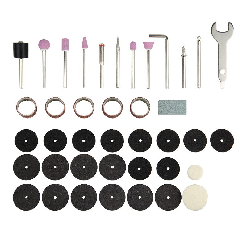 У комплект входить 40 одиниць шліфувальних тіл та змінних інструментів для різноманітних видів робіт.