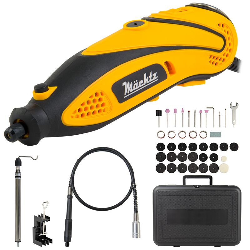 Гравер електричний Mächtz MMG-280 – простий та надійний багатофункціональний інструмент з набором насадок, призначений для виконання широкого спектру складних та точних операцій з гравіювання, шліфування, полірування, різання, зачищення.