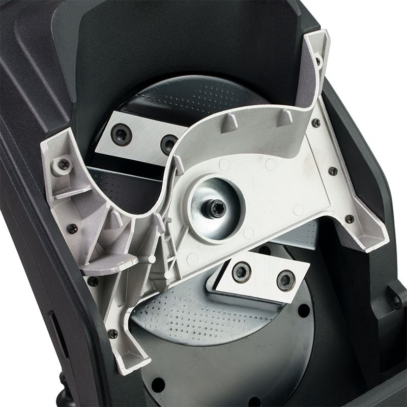 Двосторонні з’ємні ріжучі ножі забезпечують високу продуктивність різання як сирої, так і сухої деревини та гілок. За потреби їх досить легко заточувати на звичайному заточному верстаті.