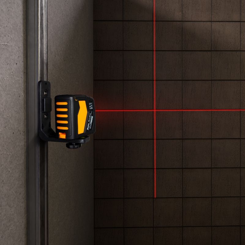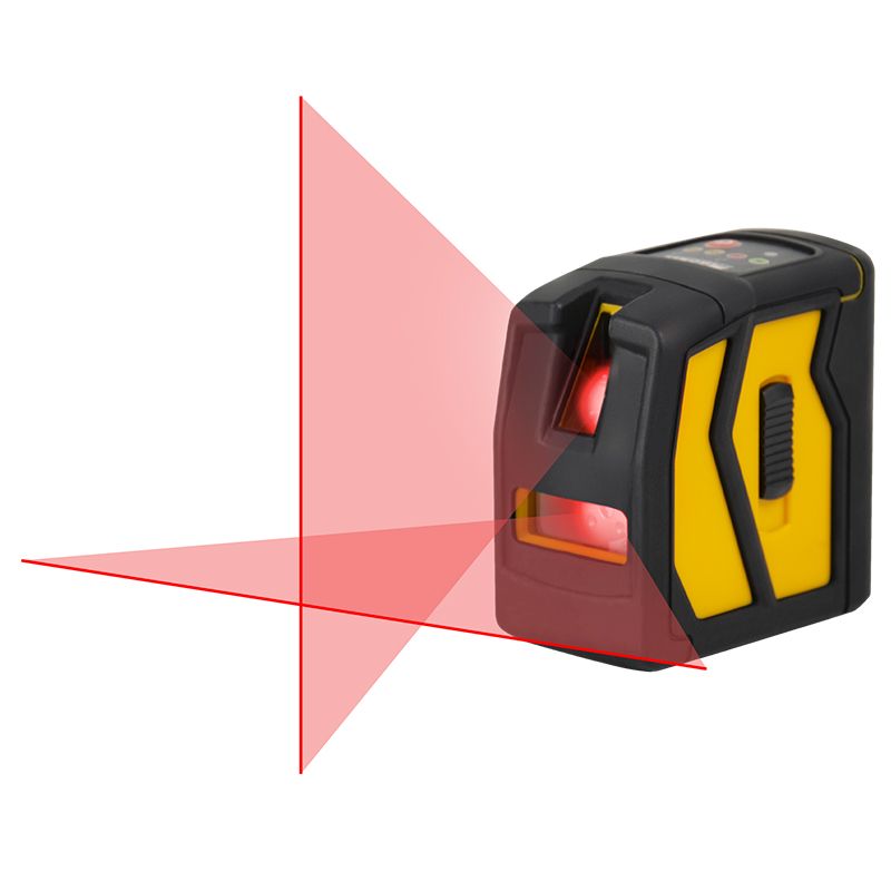 Яскравий лазер червоного спектру випромінює горизонтальну та вертикальну проекції, або ж обидві проекції одночасно, на відстань до 15м.