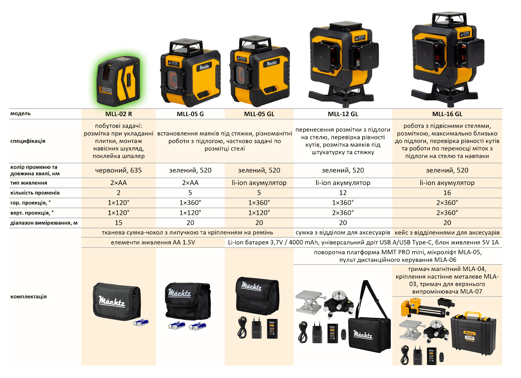 Лазерний рівень Mächtz MLL-02 R вирішує весь спектр побутових задач з розмітки у приміщеннях. Інструмент стане у нагоді під час укладання плитки, монтажу навісних шухляд, поклейки шпалер, тощо.