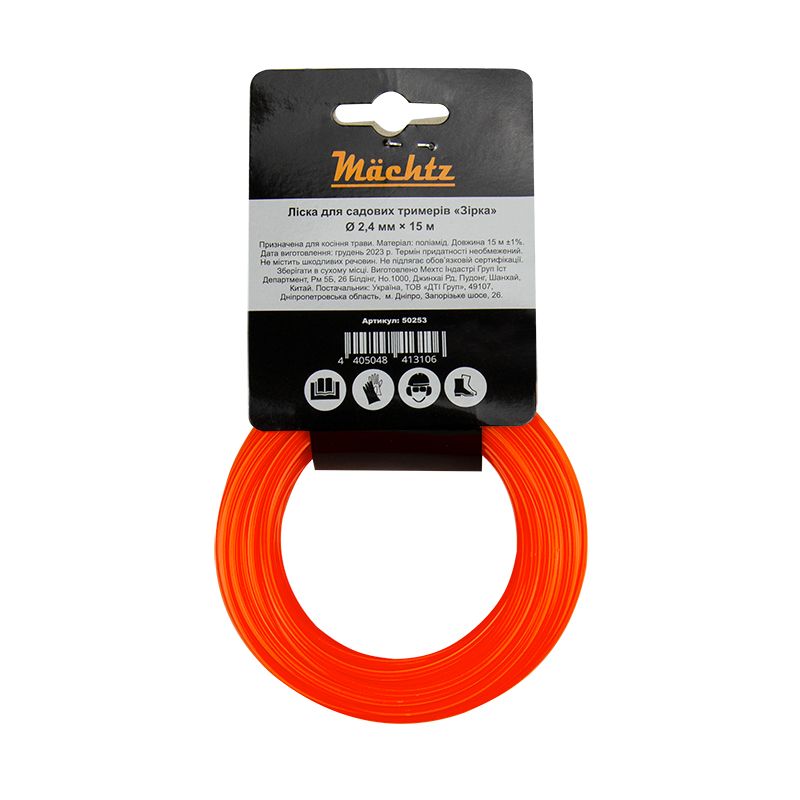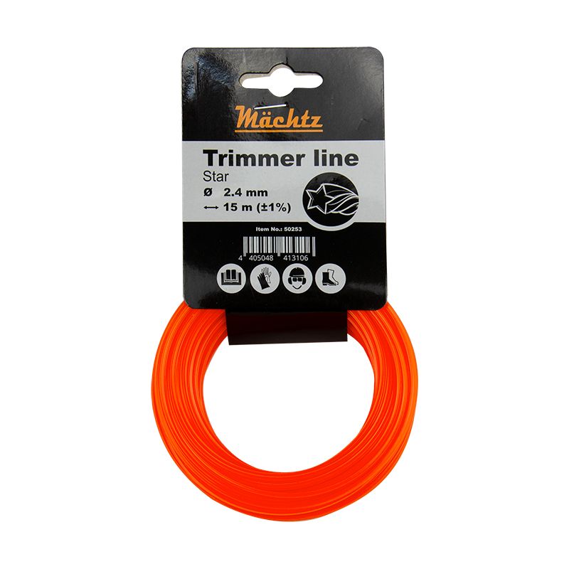 Ліска для тримерів Mächtz “Зірка” діаметром 2,4 мм і довжиною 15 м призначена для встановлення в котушки тримерів та забезпечує агресивний різ і високу продуктивність завдяки п’яти гострим граням. Вона ефективно скошує як м’яку молоду траву, так і густі зарості та перестиглу грубу рослинність.