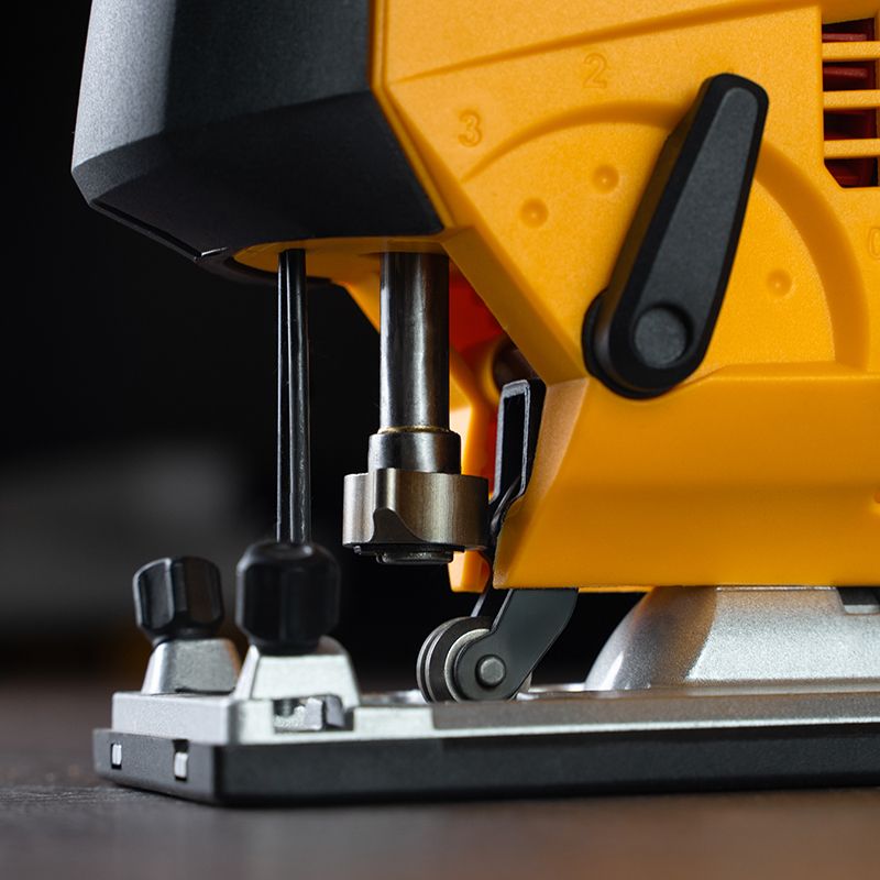 Алюмінієва лита платформа, посилена сталевою пластиною, гарантує стійкість лобзика під час роботи, забезпечує Вашу безпеку і покращує точність робіт.