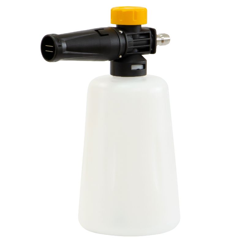 покращена насадка "Піногенератор" з регулюванням щільності піни та форми струменя допомагає розпорошити струмінь разом з миючим засобом, утворюючи якісну піну. Миюча рідина заливається безпосередньо в ємність насадки.