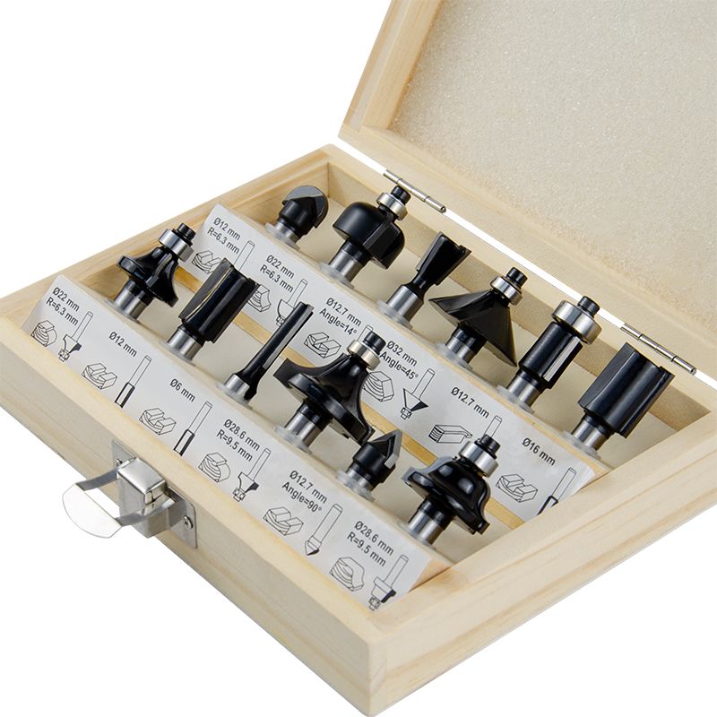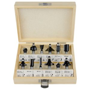 Набір фрез Mächtz 12 шт. для столярних робіт по дереву та матеріалам на основі деревини. Набір постачається у зручному дерев'яному футлярі.