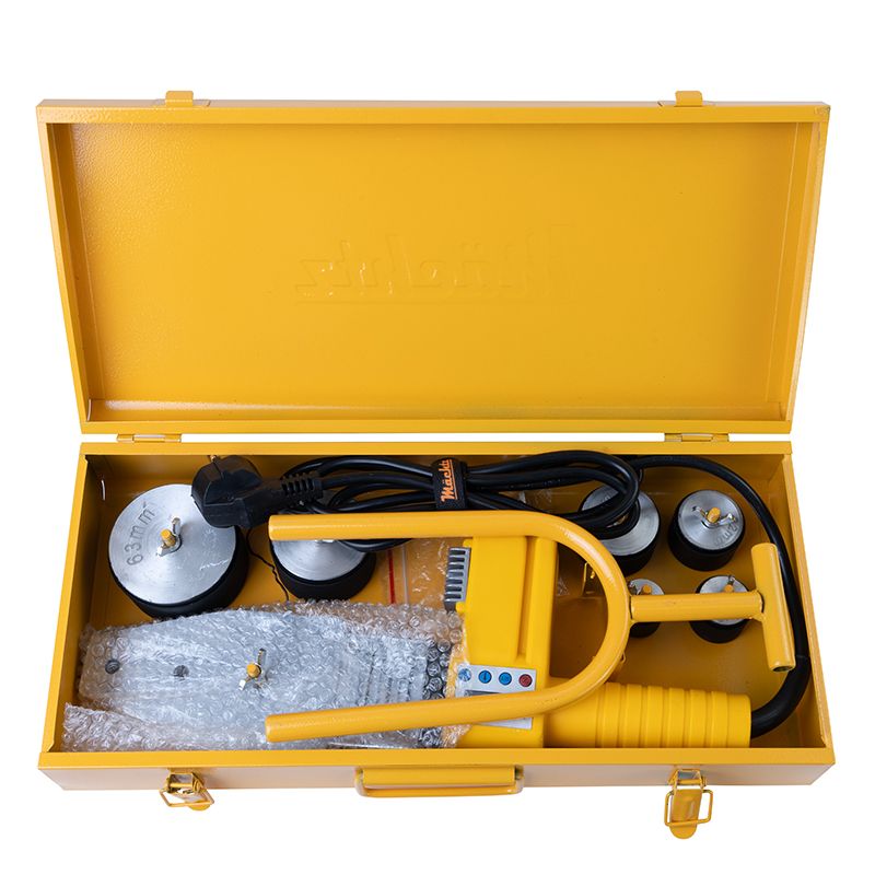 У комплекті передбачено 6 пар металевих насадок діаметром 20, 25, 32, 40, 50 та 63 мм, які підвищують функціональність паяльника.