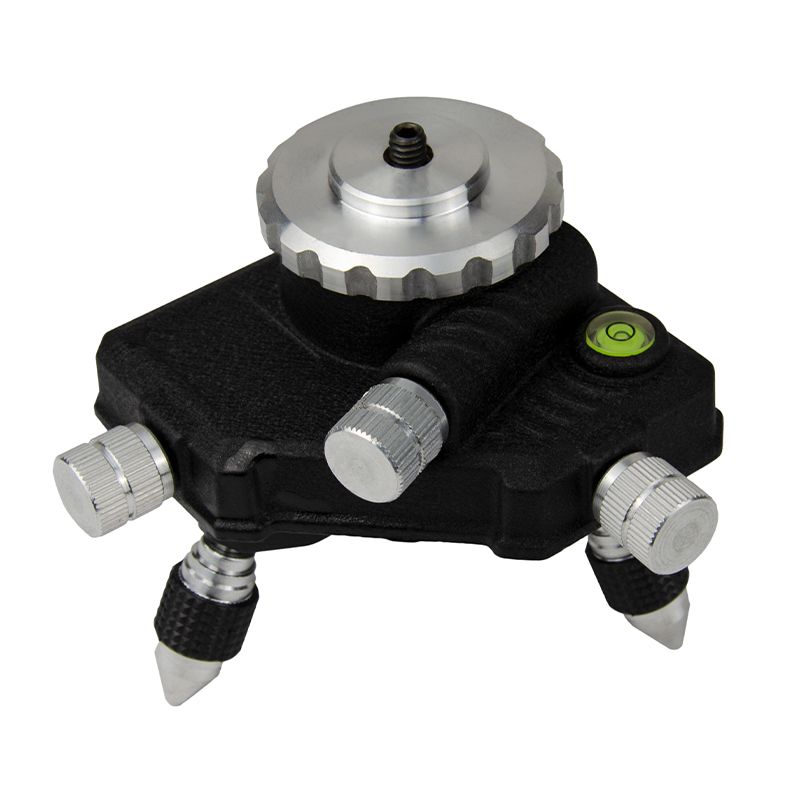 Надає можливість компенсувати первинну нерівність поверхні за рахунок регульованих по висоті ніжок. Додатково оснащена бульбашковим рівнем для швидкого пошуку правильного положення платформи.