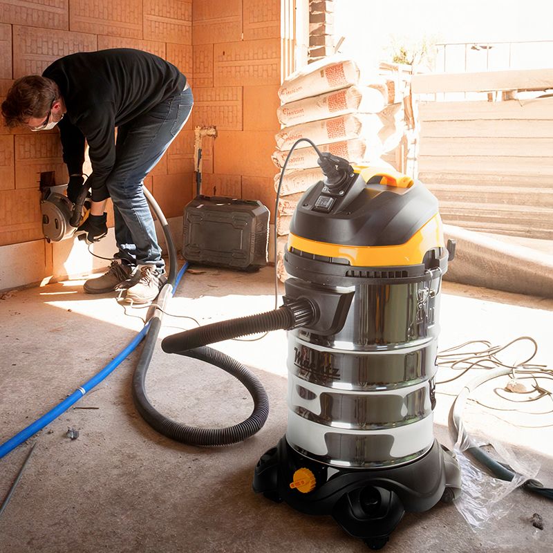 Пилосос Mächtz MVC‑1730 S забезпечує ефективне прибирання будь-якого будівельного пилу, уламків будівельних матеріалів фракцією до 32 мм, а також вологого сміття та рідини.