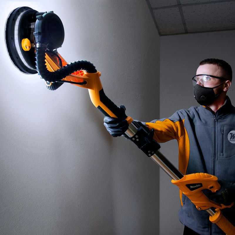 Шліфувальна машина з телескопічною ручкою Machtz MDS‑2511 – це надійний і зручний інструмент, який чудово справляється з вирівнюванням, шліфуванням та поліруванням високих стін та стель, навіть без використання драбини.