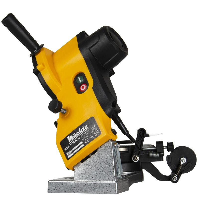 Mächtz MSS-3510 Auto – інноваційна модель верстата для заточування ланцюгів, яка має регульований клиновий упор з автоматичним натягом ланцюга, що дозволяє легше та швидше протягувати ланцюг з дотриманням встановленого кута заточування.