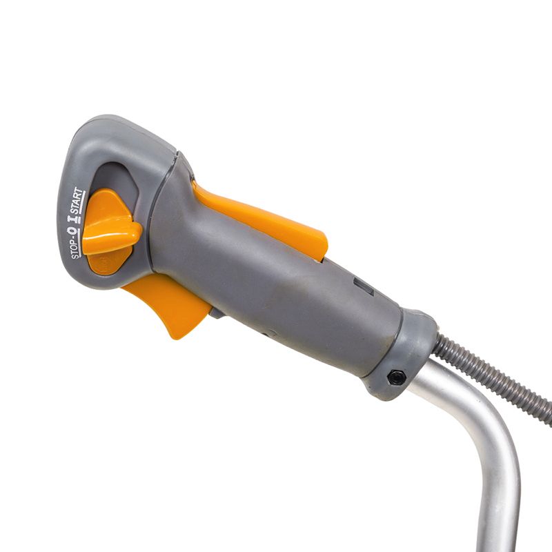 Ергономічні ручки тримера фіксуються на штанзі кріпленням, яке дозволяє швидко регулювати або розбирати косу в разі потреби.