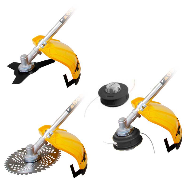 Щоб максимально розкрити потенціал інструмента в різних умовах, у комплекті передбачено кілька ефективних насадок: вдосконалену шпулю з ліскою для делікатного косіння, надійний трилопатевий ніж для щільної трави та 40-зубий диск із побідитовими напайками для боротьби з жорсткою рослинністю та чагарниками.